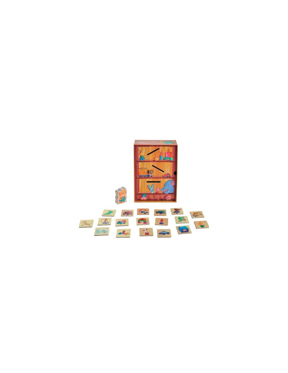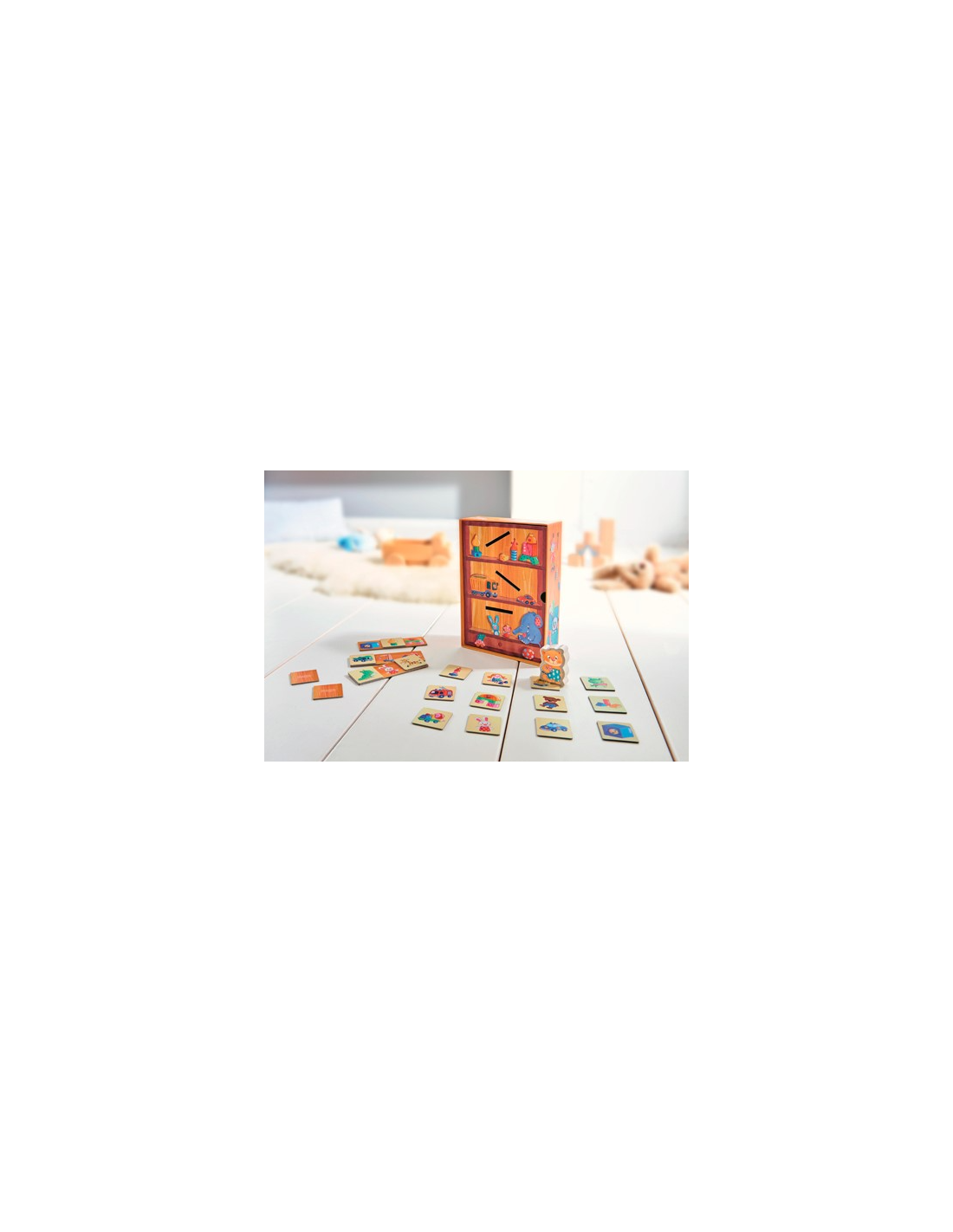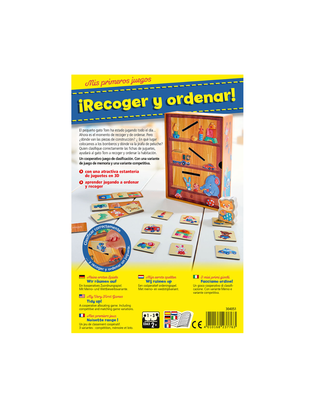 Un primer joc cooperatiu de classificació on els jugadors, per torns, han d'anar agafant fitxes de joguines i col·locant-les en la prestatgeria corresponent. Les variants competitives permeten dues opcions de joc tipus memory i tipus bingo. Amb prestatgeria per a les joguines en 3D.