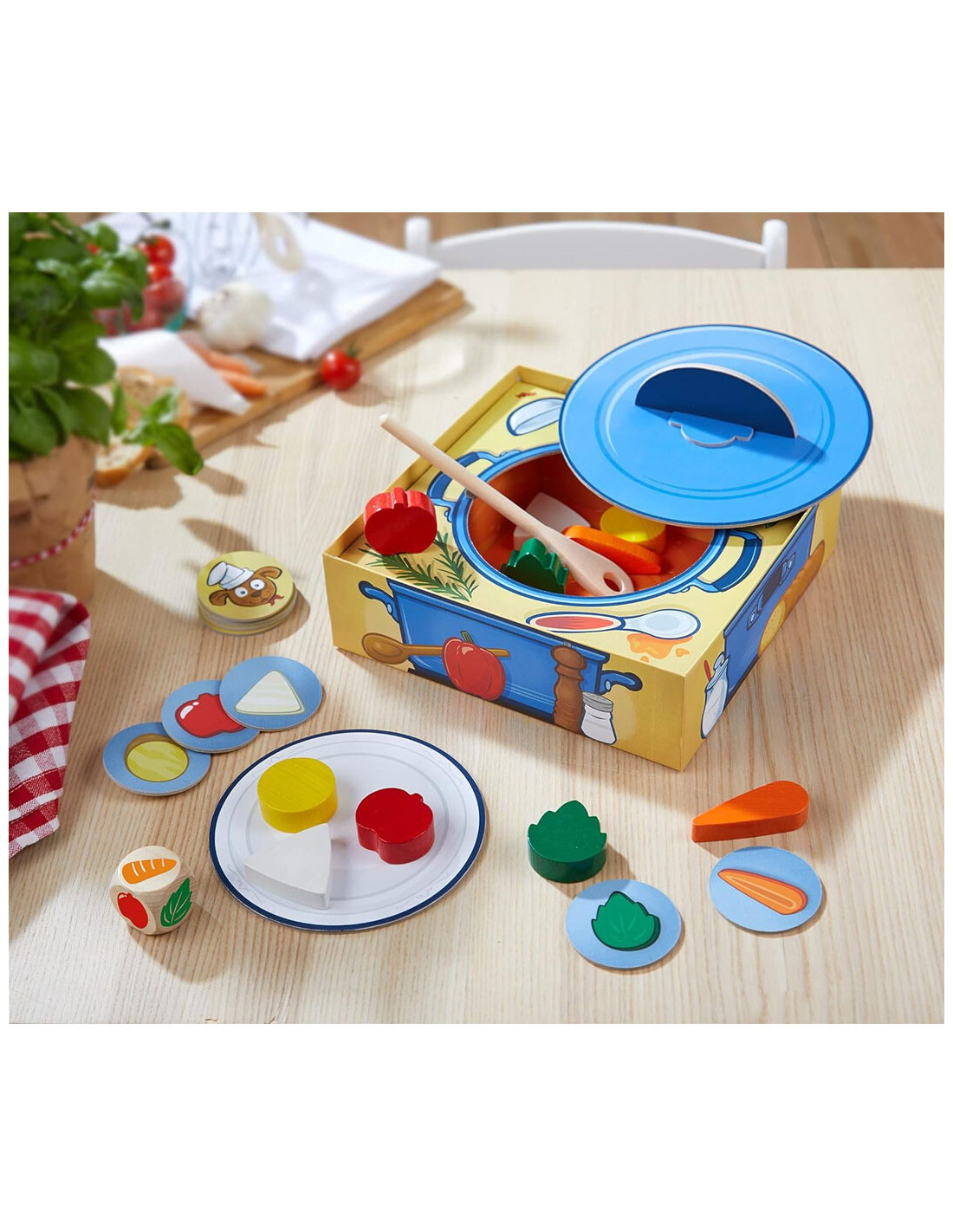 Atenció petits xefs: amb una gran ració de classificació, una cullerada d'abundant habilitat per les endevinalles i un bon grapat de ganes de passar-s'ho bé amb els jocs de memòria surt bé qualsevol plat. Amb tres jocs diferents, els més petits practicaran el reconeixement i la classificació de verdures; haureu de reconèixer aliments, endevinar els ingredients o memoritzar els components d'una recepta. Amb el joc Mis Primeros Juegos. Peque Chef d'HABA la diversió està assegurada!