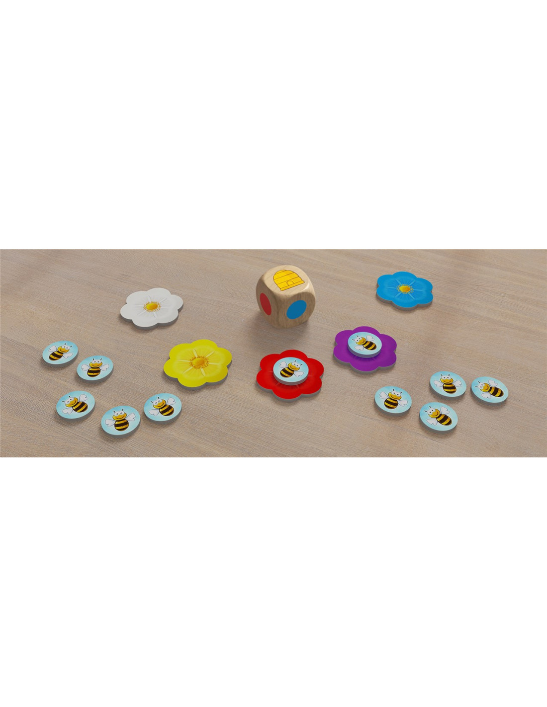 En aquest joc hem d'aconseguir que totes les nostres abelles siguin les primeres a volar fins al rusc (cubilet) o fins a les flors. Per això, per torns es llança el dau de colors i en funció del color resultant podrem desplaçar una de les nostres abelles o les haurem de deixar on són._x000D_