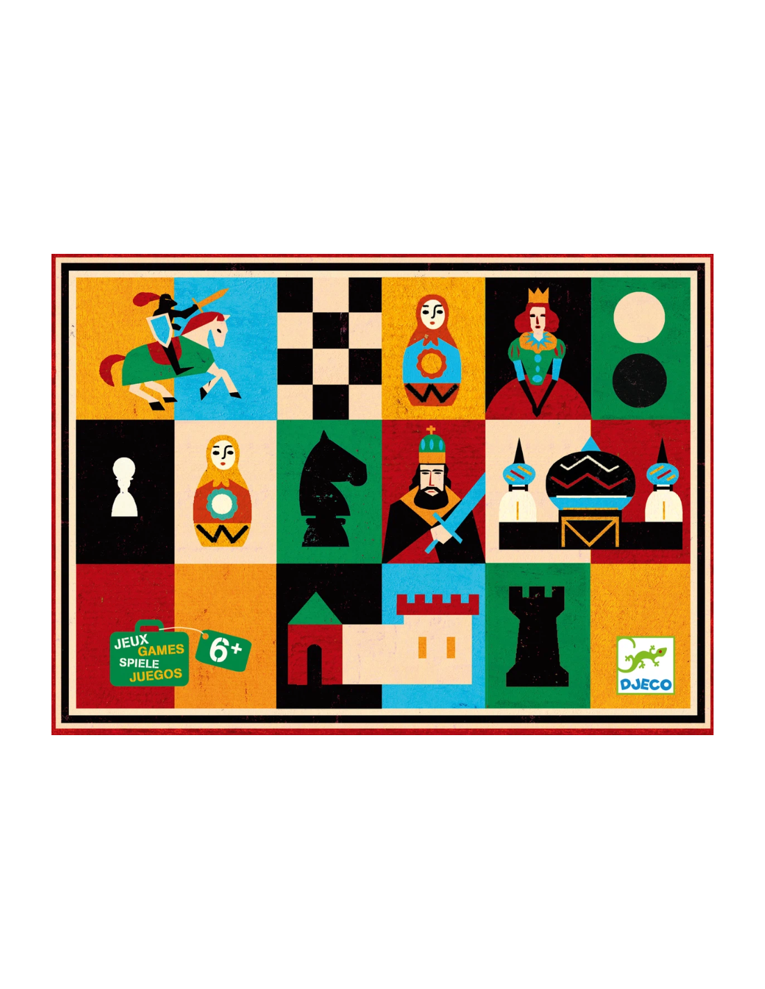 Gaudeix de dos dels jocs més tradicionals en un sol maletí amb el set de maletí d'escacs i dames que et permetrà transportar i guardar els teus jocs amb facilitat. Compta amb un tauler de doble cara i peces de fusta natural de qualitat amb un disseny clàssic i elegant. A més, inclou un llibret d'iniciació amb les regles del joc.