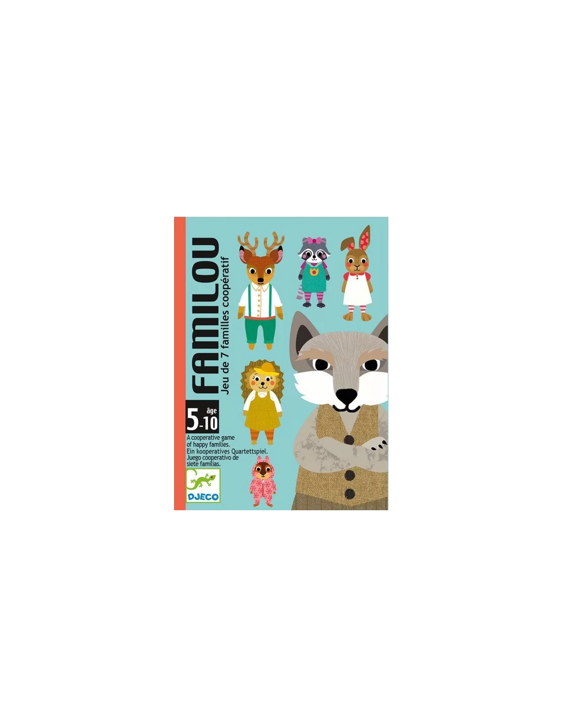 Un joc cooperatiu de 7 famílies en el qual tots els jugadors juguen junts contra el llop. Per a guanyar, cal formar les 7 famílies d'animals abans que es girin les 6 cartes de llops! En el joc de cartes Familou, tots els jugadors guanyen o perden junts contra el llop.