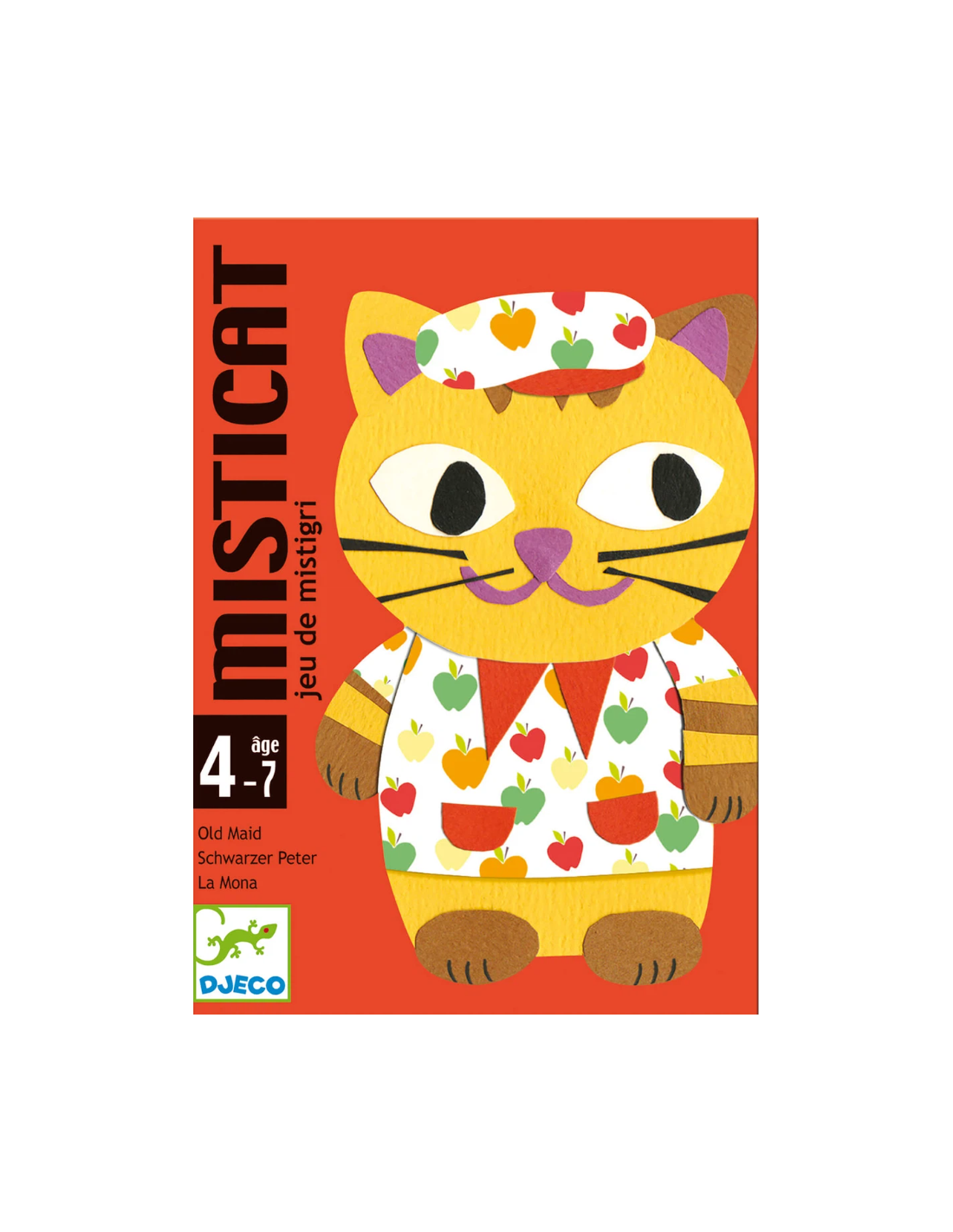 Un joc de parelles on cal desfer-se de totes les cartes associant les imatges amb cura de no acabar amb el Misticat! Al final de la partida, el jugador amb aquesta carta a la mà perd! El joc de cartes Misticat de Djeco conté cartes il·lustrades i amb siluetes amb forma de gat.