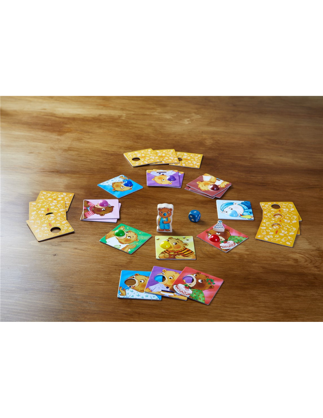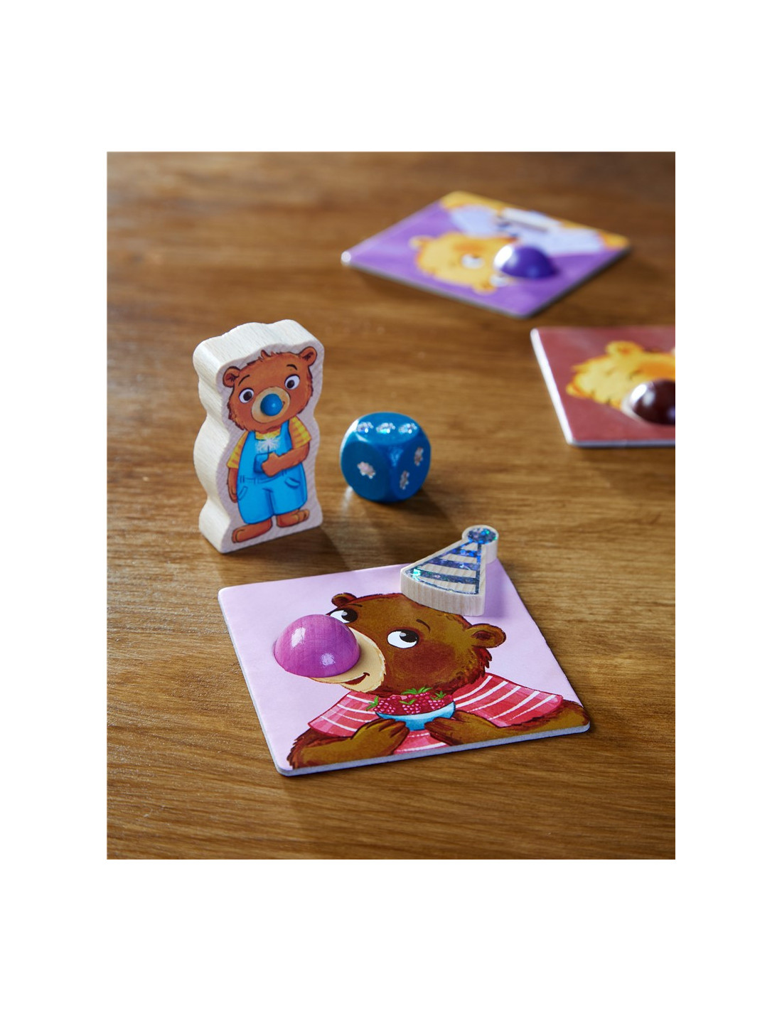L'Os Napi ha organitzat una festa d'aniversari i tots els seus amics arriben ben disfressats amb barrets de colors. Però hem d'assignar-los el nas del color corresponent. Oso Napi d'HABA és un joc de daus on, per torns, haureu d'aconseguir desfer-vos de les 6 cartes d'ossos que tingueu a la mà, col·locant-les sobre el nas del color corresponent.