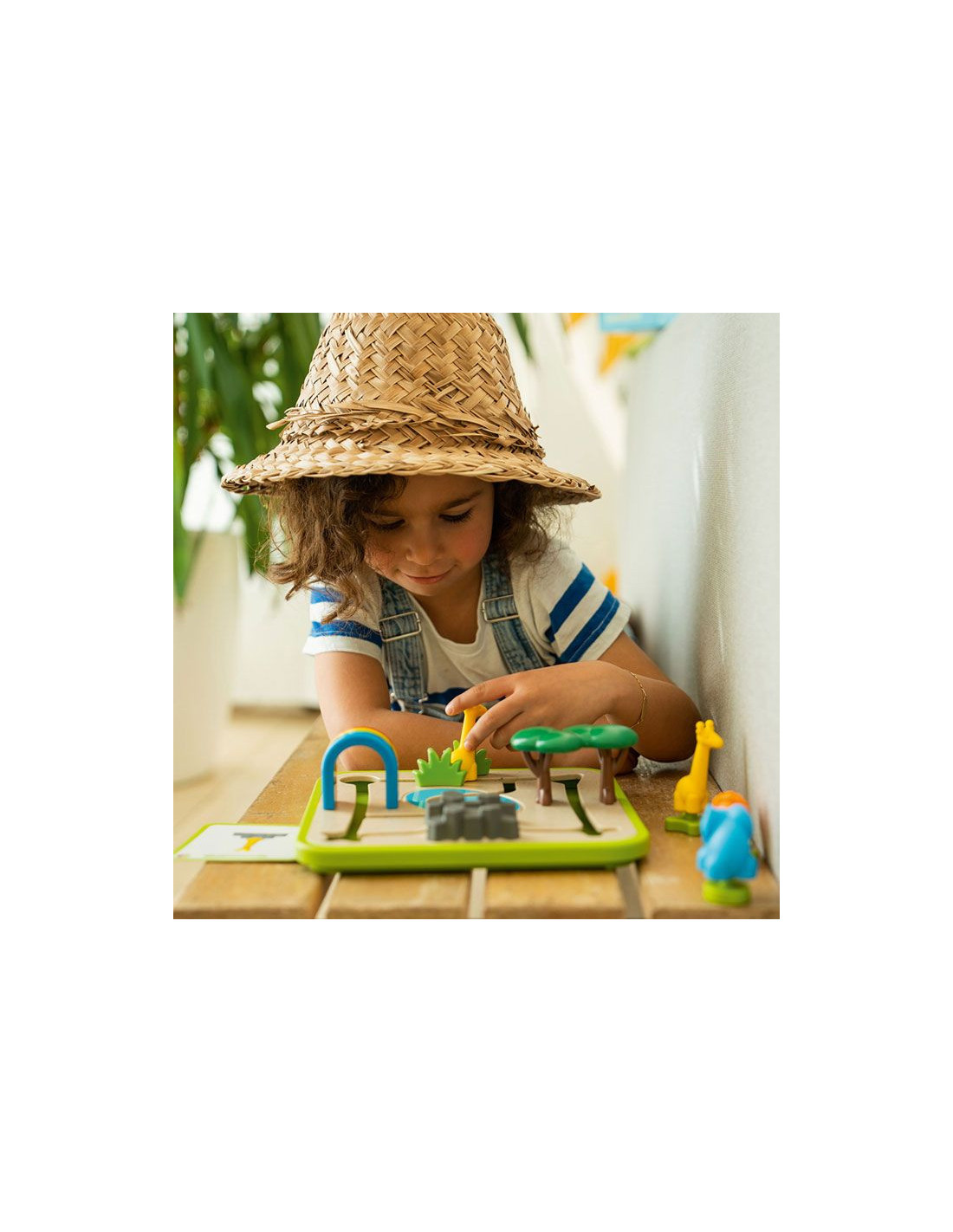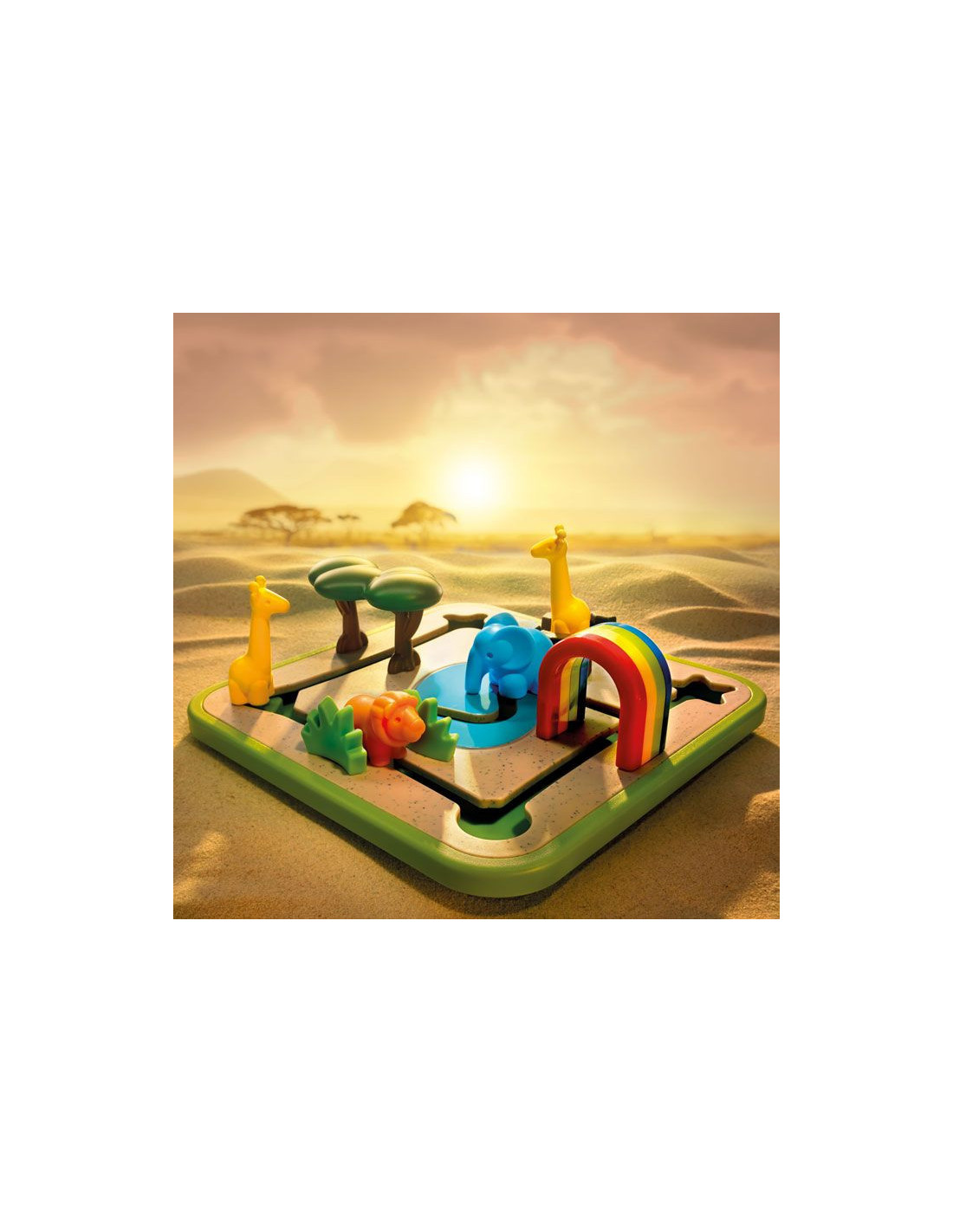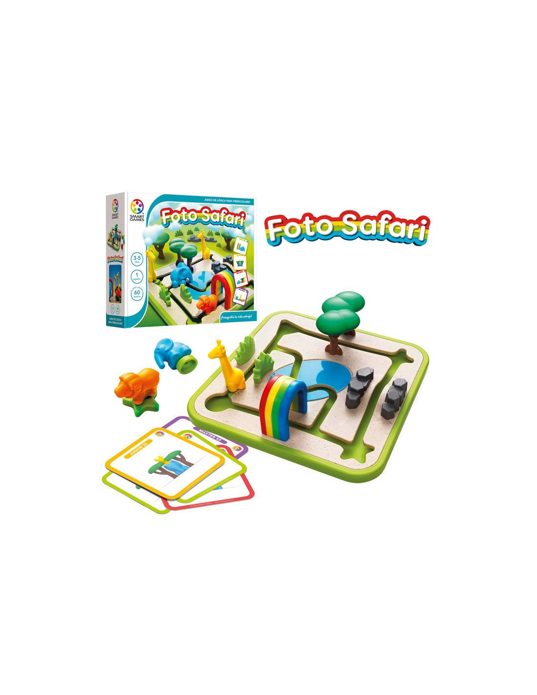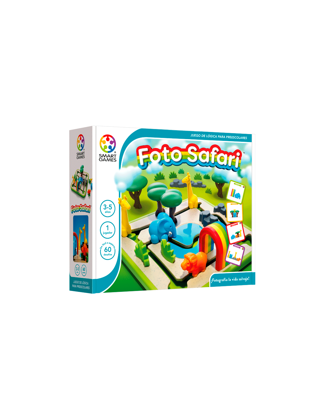 Captura la foto perfecta! 3, 2, 1, patata! A aquests animals de safari els encanta posar per a la càmera! Mou-los pel tauler perquè estiguin en la posició perfecta per a la foto. No ho oblidis! Al lleó no li agrada l'aigua, l'elefant no pot enfilar-se per les roques i les girafes són massa altes per passar per sota dels arbres. Llest per a passar una estona salvatge amb Foto safari?