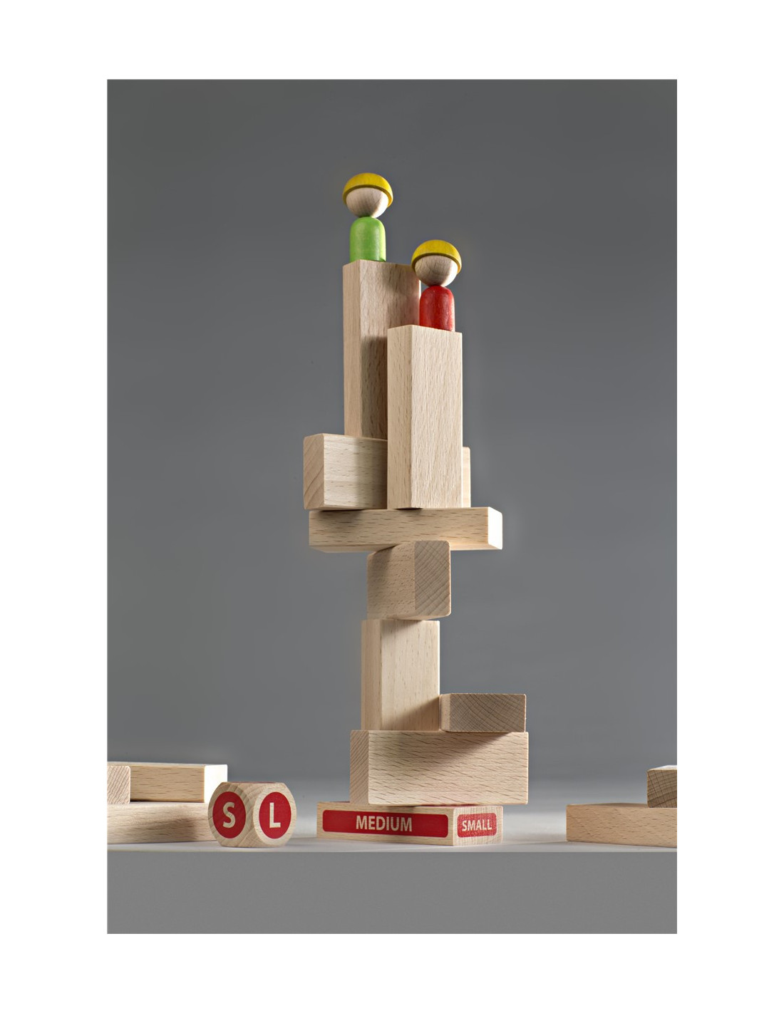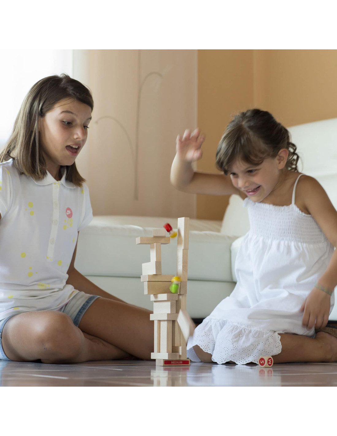 Construeix el palau més alt sense fer-lo caure! Palazzo Pazzo és un joc de fusta sostenible i ple de tensió, ideal per jugar en família i posar a prova la concentració i el pols.