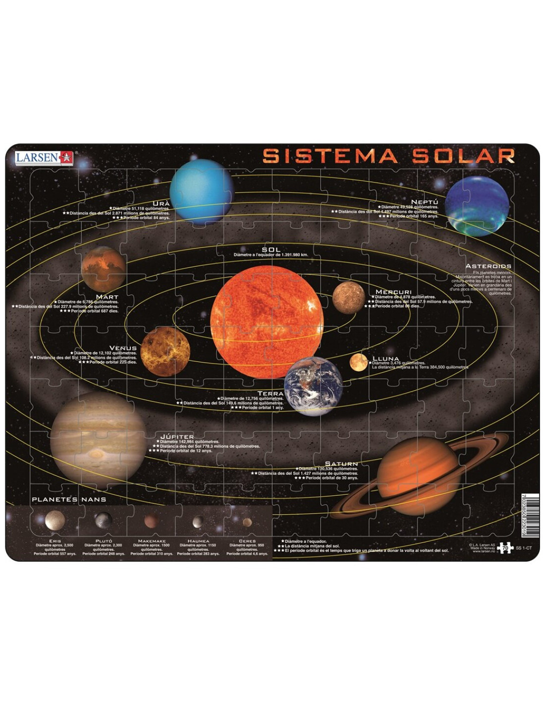 Amb aquest trencaclosques del sistema solar, els petits i petites de casa milloraran i desenvoluparan els coneixements científics sobre el sistema solar. El puzzle permet conèixer el diàmetre de cada planeta, la distància del sol i el període orbital. El trencaclosques inclou 70 peces._x000D_