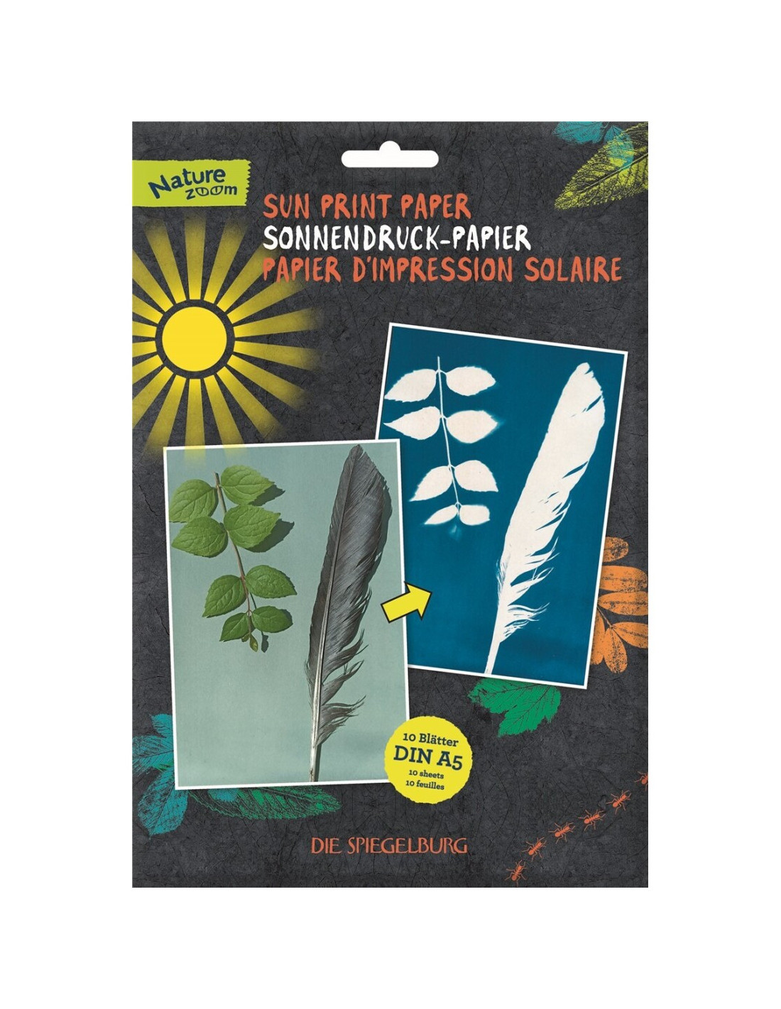 Passa grans moments a l'aire lliure amb el paper per a impressió solar Nature Zoom. No només és un gran set creatiu, sinó també un emocionant projecte per a tots els exploradors i aventurers. Els objectes i formes que escolliu es col·loquen sobre el paper especial i, al cap d'una estona, la llum del sol incideix i crea preciosos patrons sobre el paper. Ja siguin fulles, flors o altres tresors de la natura, la imaginació no té límits. Llavors, només s'haurà de fixar amb aigua per a que l'estampació duri._x000D_