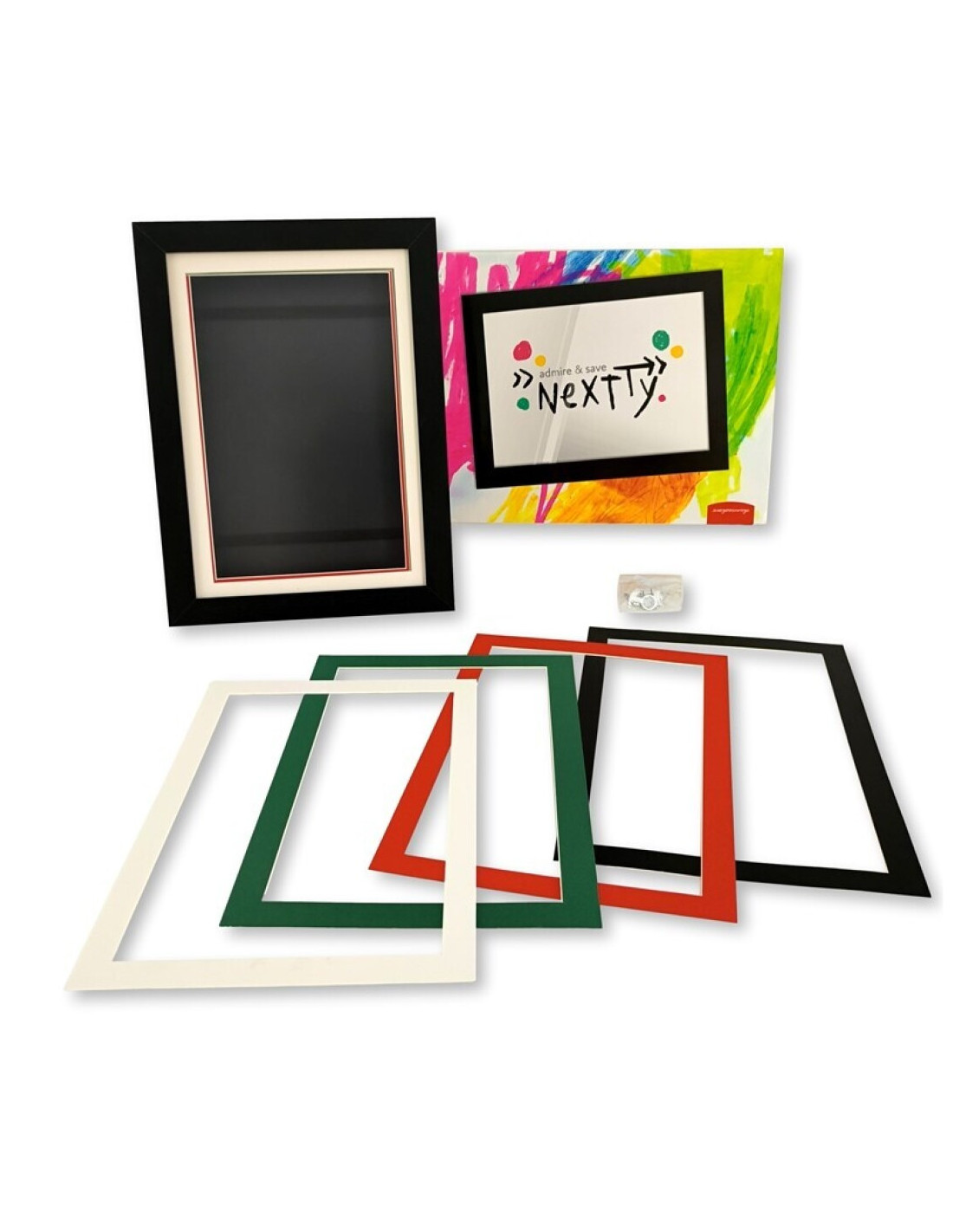 Vols emmagatzemar i presentar les creacions? Amb el marc per a dibuixos Nextty negre ho tens fàcil. Només has de col·locar la teva obra d'art al marc triant el color del paspartú que més t'agradi i ja ho tindràs. Quan tinguis un dibuix nou el pots posar davant l'anterior i tornar a col·locar el marc allà on vulguis._x000D_