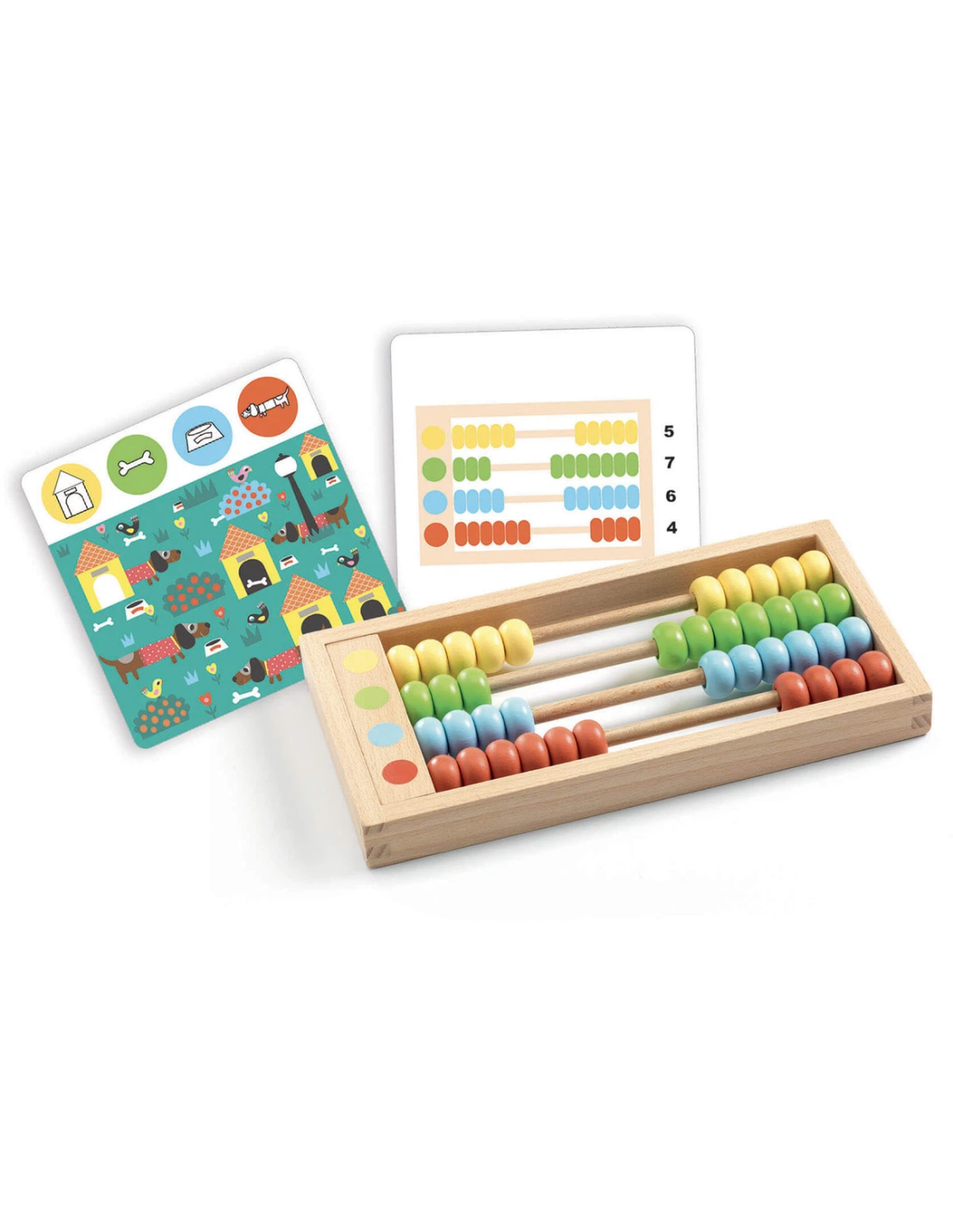 És un dels primers jocs de recompte en dues direccions: els nens compten els elements i després transcriuen el resultat a l'àbac.