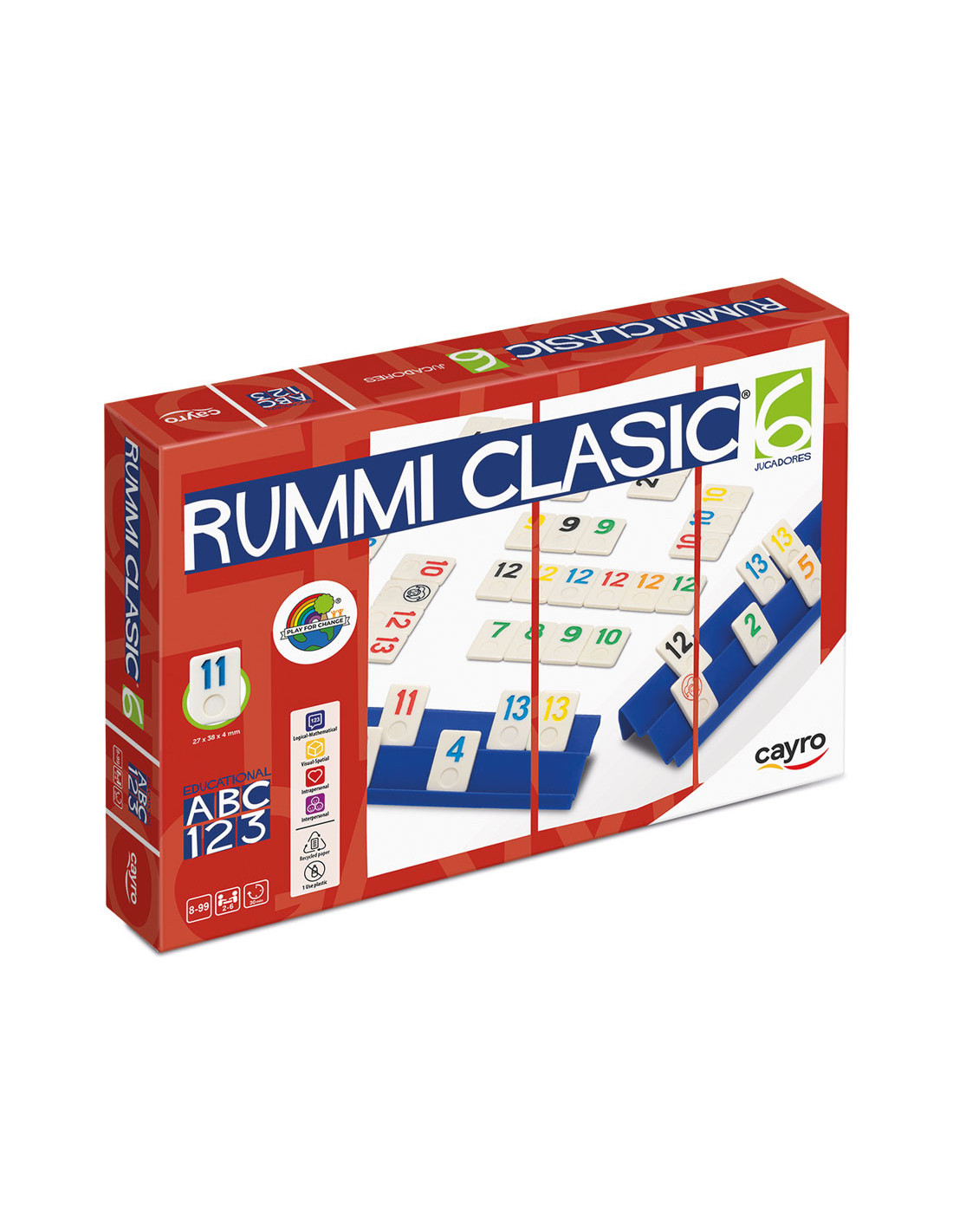 El RummiClàssic és un joc numèric que posa a prova la capacitat de pensar, anticipar moviments i reorganitzar combinacions sobre la taula. Aquesta versió permet jugar fins a 6 persones, fet que el converteix en una proposta adequada per a trobades familiars i grups grans.