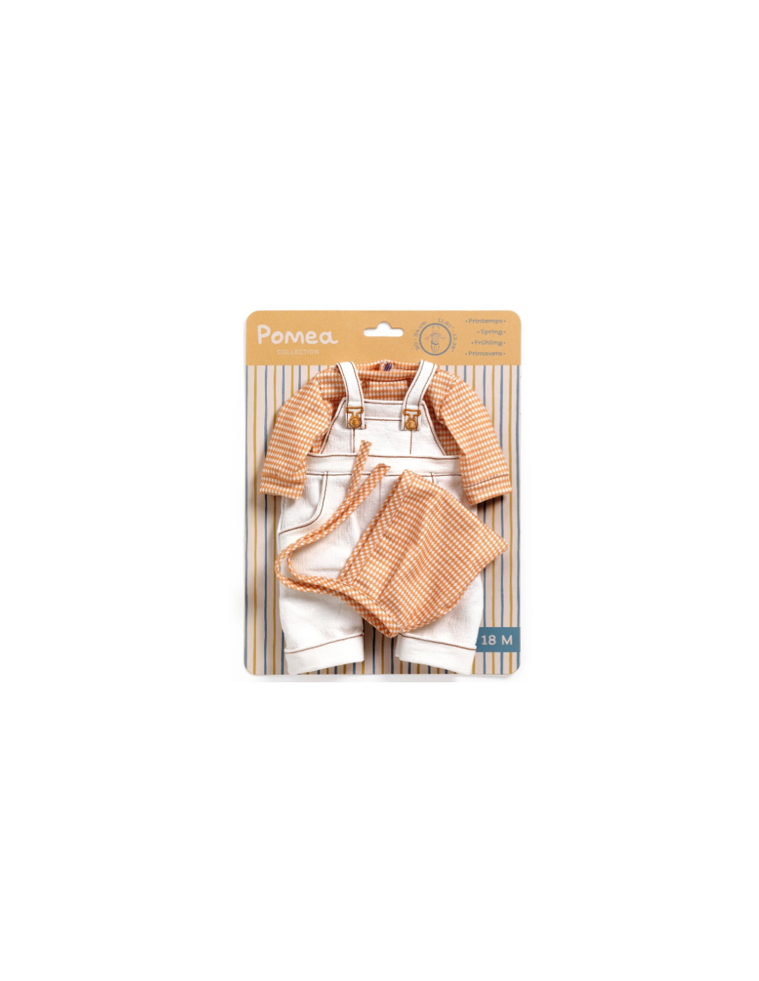 Vesteix a totes les teves nines amb el conjunt roba POMEA per a nina color canyella! Aquest conjunt conté 2 peces de gasa doble 100% cotó: un peto que es tanca amb velcro a l'esquena i que permet als més petits vestir fàcilment a la nina i la gorra amb llaç. És ideal per a que els més petits gaudeixin jugant, no pot faltar a la seva col·lecció!_x000D_
