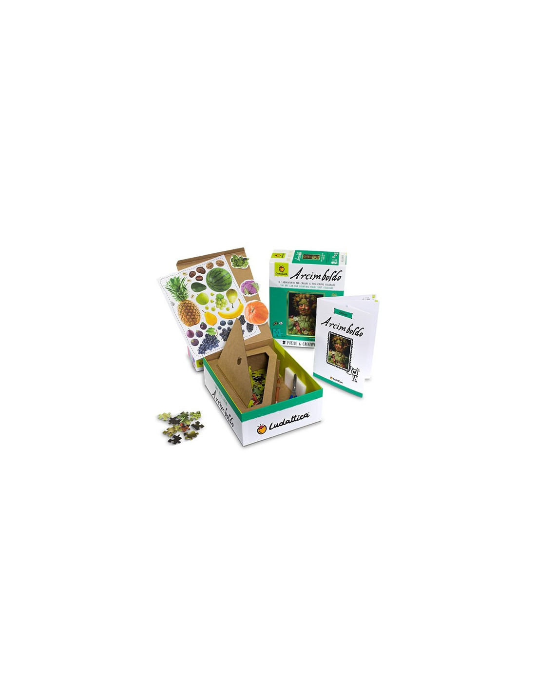 El puzle i el kit per a crear el teu primer collage! Amb l'Art Atelier Arcimboldo de Ludattica, els nens i nenes descobreixen l'original obra d'aquest artista muntant el puzle d'un dels seus famosos "caps compostos". Després, posen a prova la seva creativitat experimentant la tècnica del collage per a crear uns curiosos retrats!
