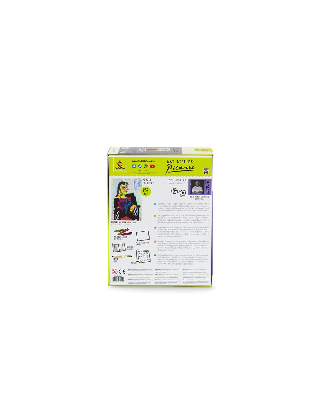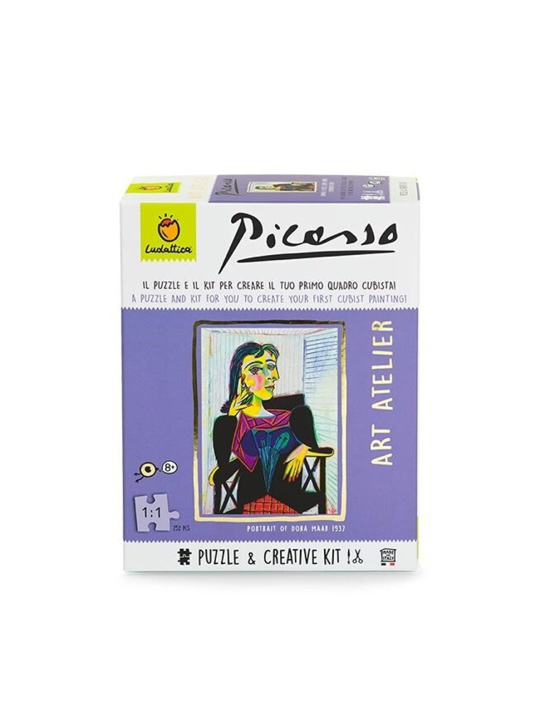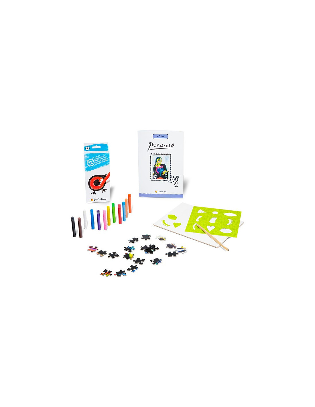 El puzle i el kit per a crear el teu primer quadre cubista! Amb l'Art Atelier Picasso de Ludattica, els nens i nenes descobreixen l'obra del gran mestre, muntant el puzle d'un dels seus famosos retrats de dona. Després, posen a prova la seva creativitat amb el laboratori creatiu: un set complet format per un llenç de pintor, 12 pintures a l'oli d'alta qualitat, un llapis i diverses plantilles. El kit permet crear d'una manera senzilla i divertida una obra d'estil cubista per a exposar a l'habitació!