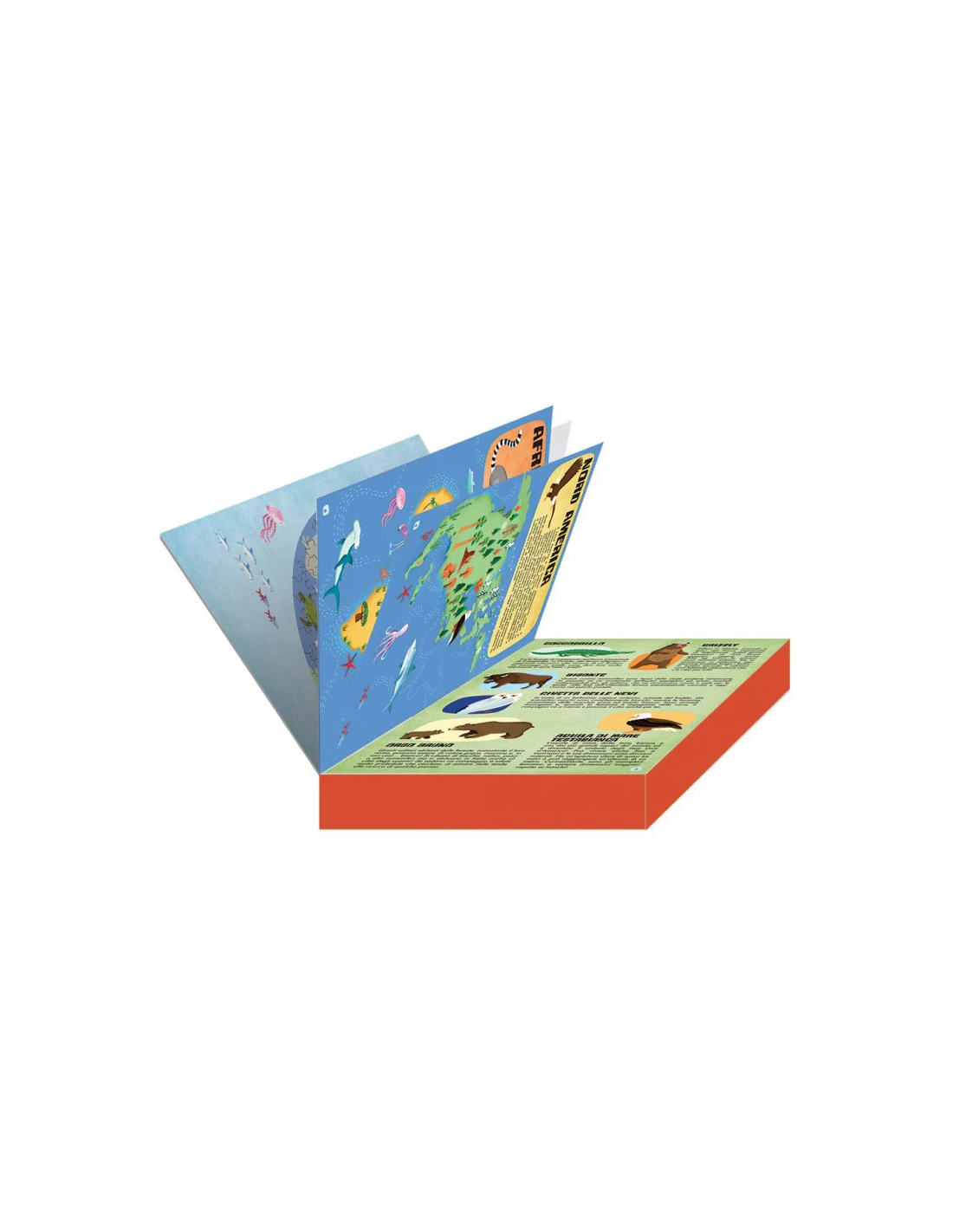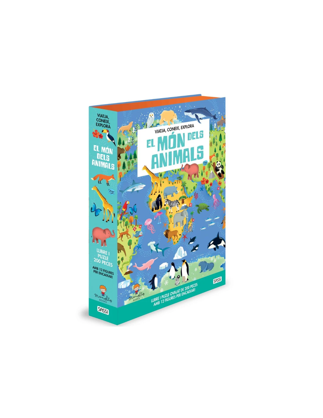 Puzzle oval de 200 peces ( 70 x 48 cm. )_x000D_ _x000D_ 12 figures d'animals per encaixar._x000D_ _x000D_ Llibre explicatiu sobre els diferents continents i animals del planeta Terra._x000D_ _x000D_ Editorial: Manolito Books