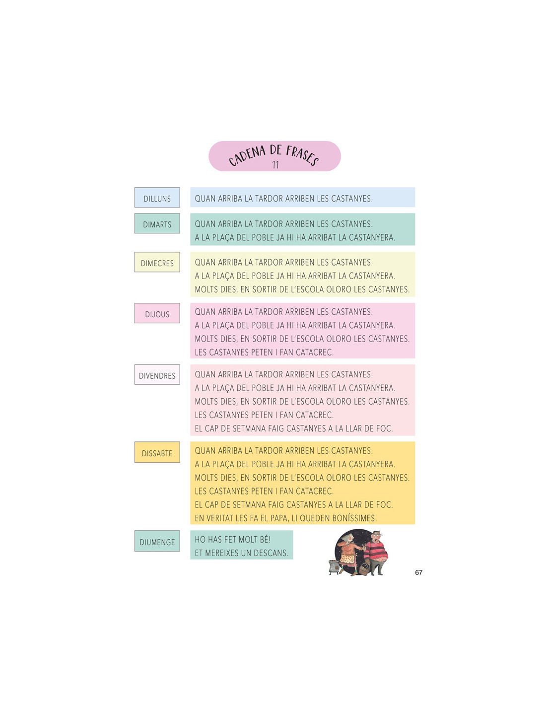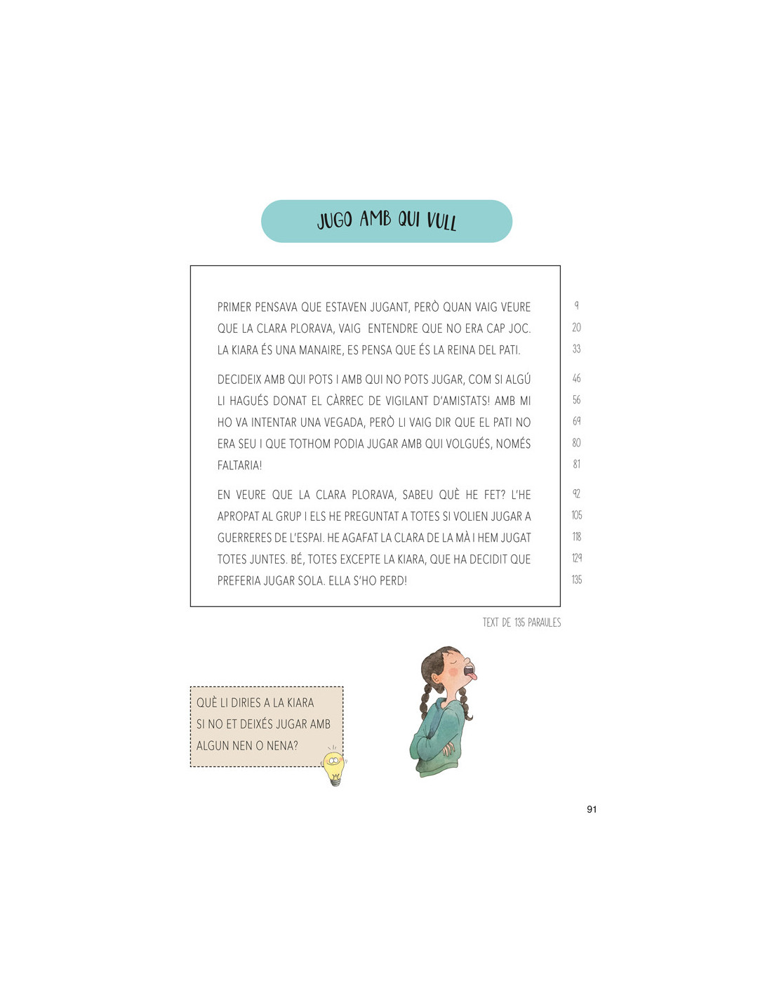 El llibre està dividit en diferents parts i pretén oferir un ventall d'oportunitats més enllà de la lectura. Per això, veureu que hi ha uns requadres amb una bombeta que anirien dirigits a l'adult que està acompanyant l'entrenament lector. Són propostes relacionades amb la lectura que s'acaba de fer._x000D_